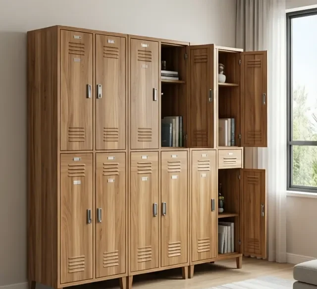 Ngoài ra, BLUECON còn cung cấp các mẫu tủ nhiều cánh kết hợp, đáp ứng nhu cầu lưu trữ đa dạng. Một số mẫu được trang bị thêm móc treo, khe thông gió hoặc khóa số để tăng tính tiện ích.