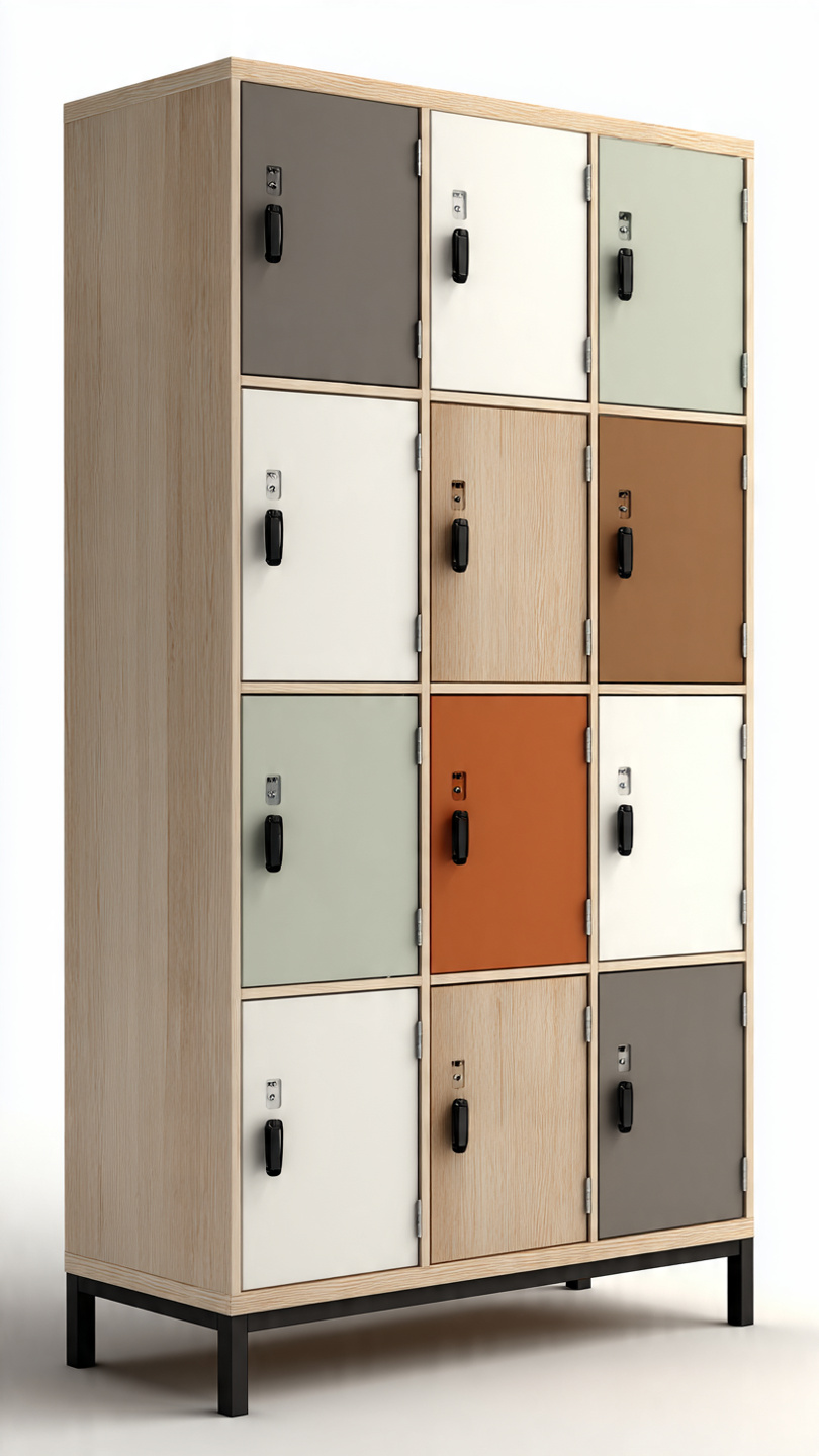 - Tủ locker gỗ công nghiệp: Mang tính thẩm mỹ cao, bề mặt chống trầy xước, chống ẩm, thích hợp spa và văn phòng sang trọng. Ngăn và phụ kiện tháo lắp tiện lợi.